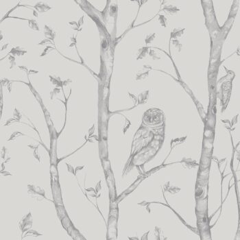 Add a touch of whimsy to your home décor with this forest wallpaper. The modern print uses shades of grey to create a neutral color scheme.
