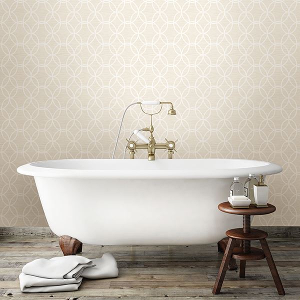 Add a modern neutral to your walls with this beige link wallpaper. The oblong pattern pops against a chic grasscloth print background that features tactile, raised inks. This design is perfect for a monochrome living room or bedroom.