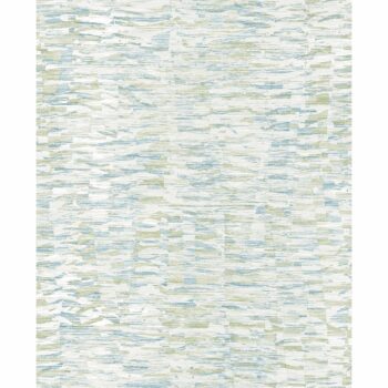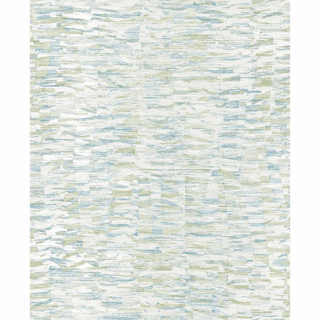 Layers of brushstrokes and raised ink details create an abstract texture. The interplay of green, teal, and blue over dove grey emits a sanguine atmosphere. Nuance is an unpasted, non woven wallpaper.