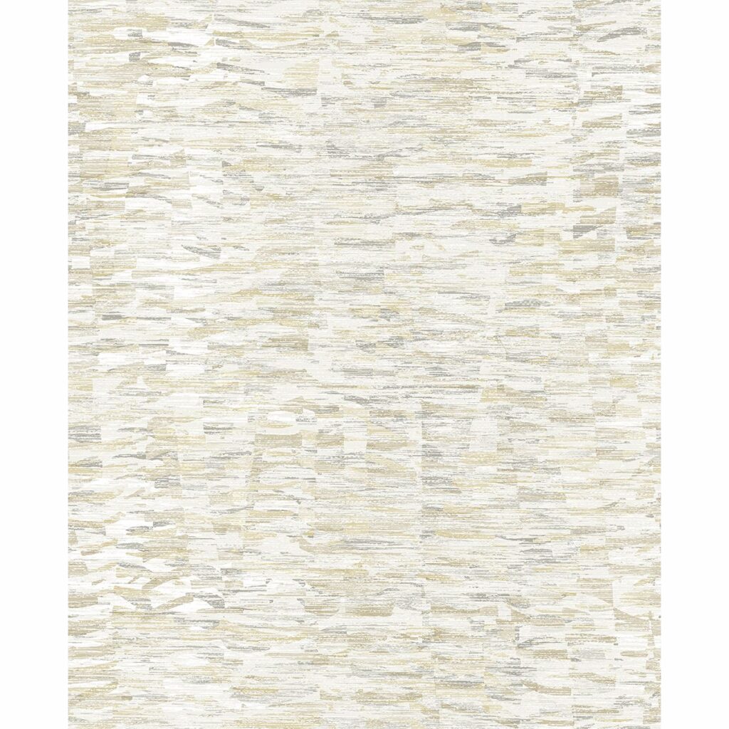 Touches of yellow allow this wallpaper to brighten a room in a subtle way. Raised white ink adds dimension to the abstract texture’s base mix of taupe, charcoal, and dove grey. Nuance is an unpasted, non woven wallpaper.