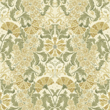 This ornate, golden floral will bring a hint of romance and luxury to your interiors! Rich with Art Nouveau influences, fanning flowers are embellished with scrolled leaf frames and waving columns of petite, pink blossoms. Ojvind is an unpasted, non woven wallpaper.