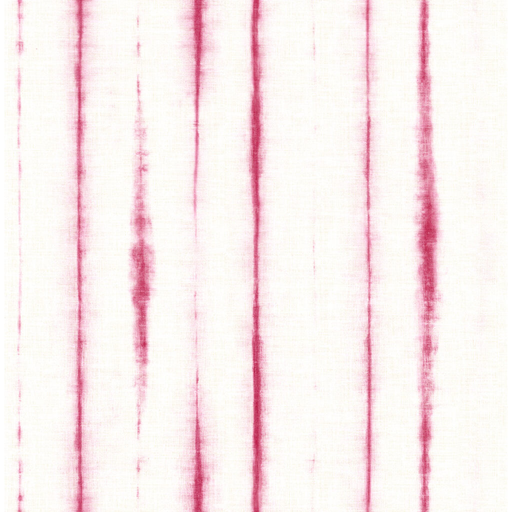 Playful yet sophisticated, this faux linen wallpaper is accented with ribbons of vibrant pink. The shibori application lets the color bleed softly into its surroundings for an organic, textile look. Orleans is an unpasted, non woven wallpaper.