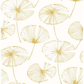 Like a golden sunset shining down, this painterly frond wallpaper is pure joy. The unique design features a white background with abstract gold watercolor designs.