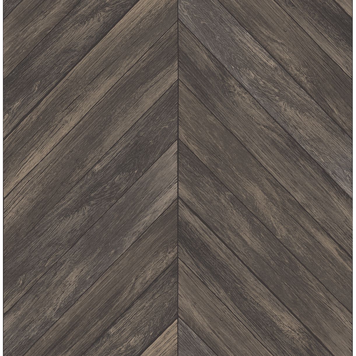 In a rich, dark brown with ashy undertones, this faux wood wallpaper is sophisticated. Designed to look slightly worn-in, this print captures the look of reclaimed wood. The chevron arrangement gives this pattern an upscale feel.