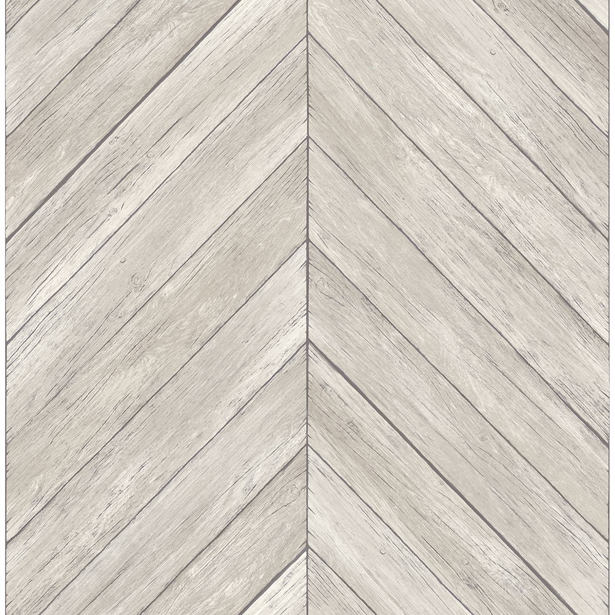 Light grey and off-white planks are arranged in a modern chevron pattern. This faux wood design would look charming in a farmhouse styled home. Jed is an unpasted, non woven wallpaper. Parisian is an unpasted, non woven wallpaper.