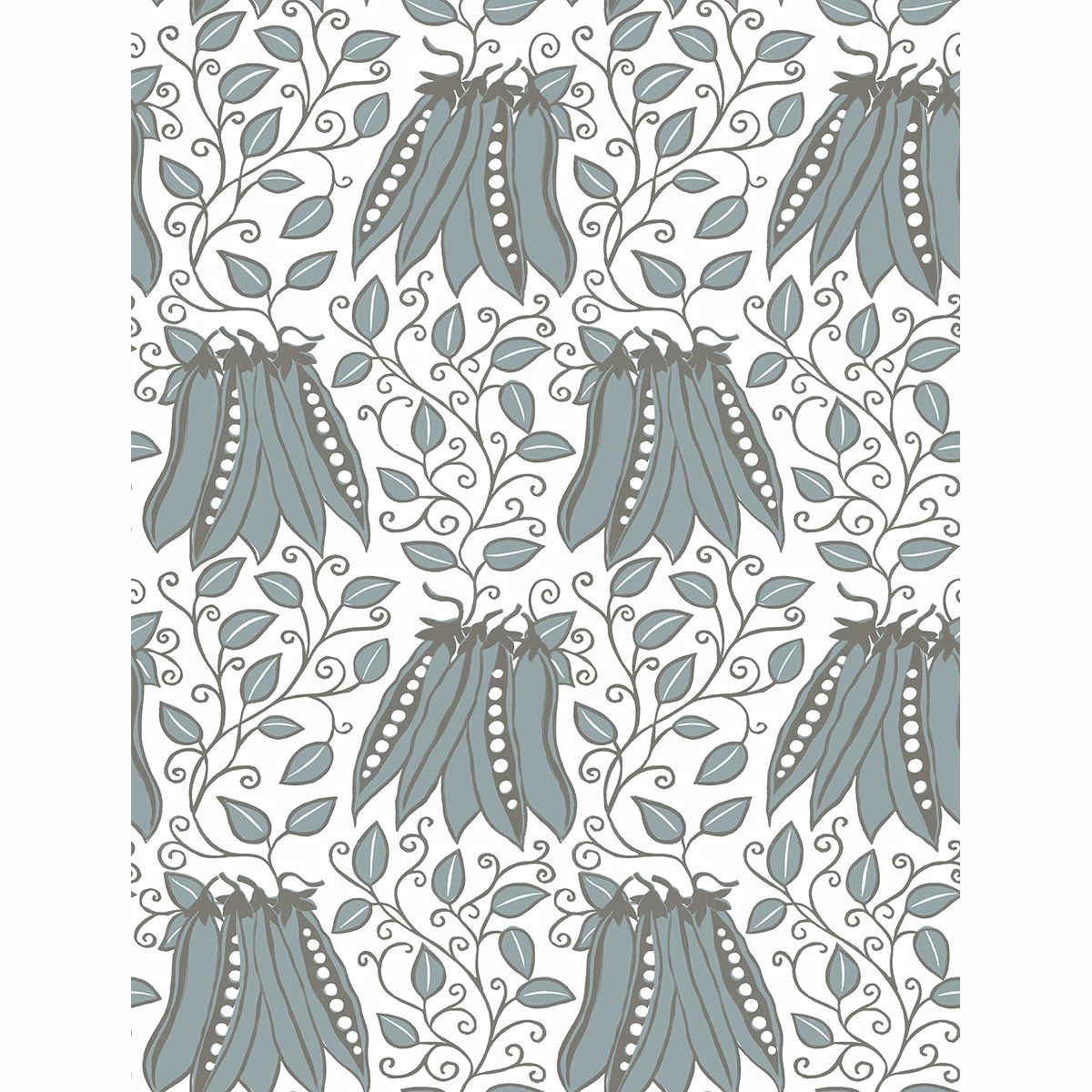 Freshly picked from a story book garden, this delightful snap pea design has a cheerful energy. The turquoise vegetables and twisting vines are a wonderfully whimsical print that is sure to bring a smile to your face. Peas in a Pod is an unpasted, non woven wallpaper.