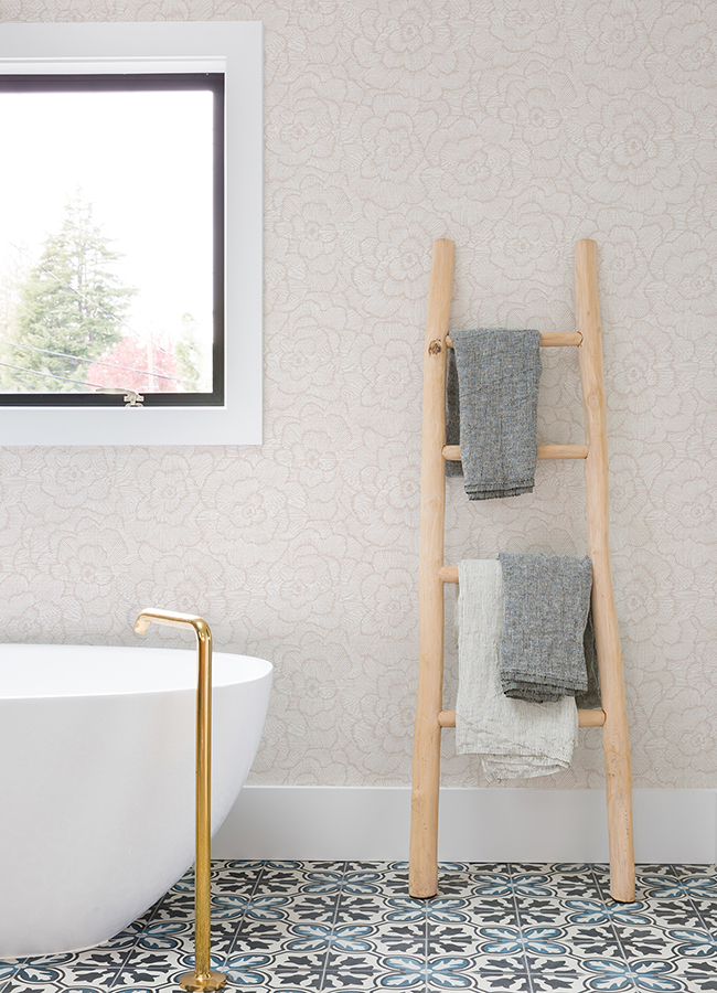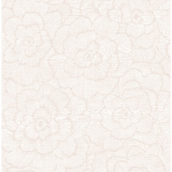 Voluminous flowers unfurl before your eyes in this enchanting wallpaper. Raised white lines shape each petal against a pink faux grasscloth backdrop. Periwinkle is an unpasted, non woven wallpaper.