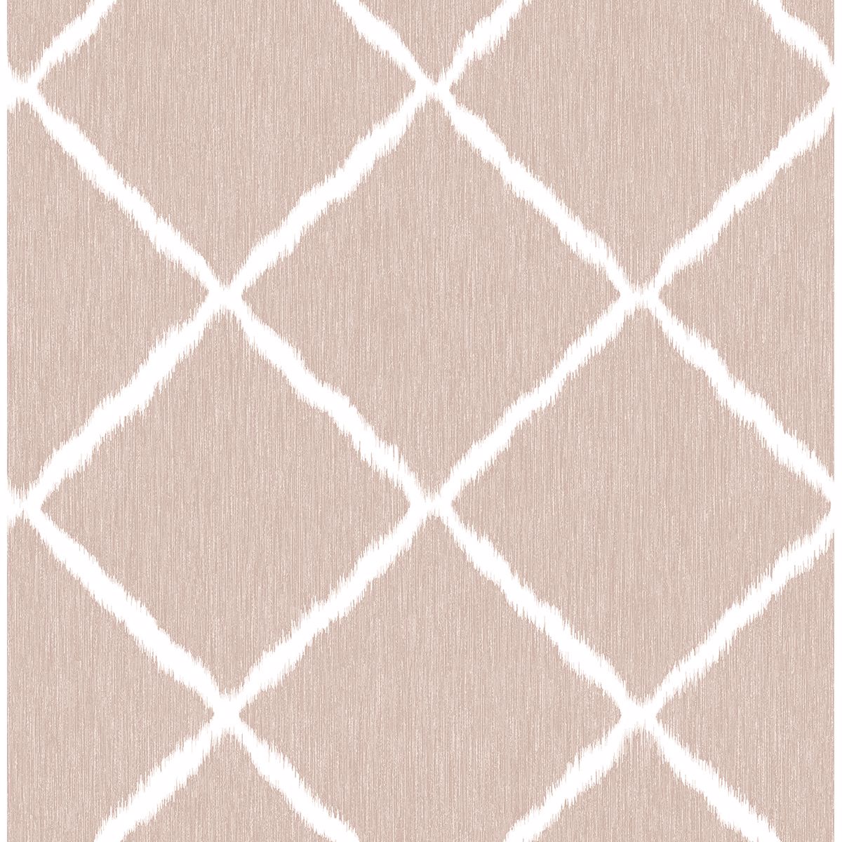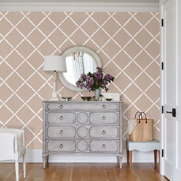 Done in an ikat style, this large-scale trellis has a relaxed feel. The dusty shade of pink is delightful and gives off a quiet grace. Ikat Trellis is an unpasted, nonwoven wallpaper.