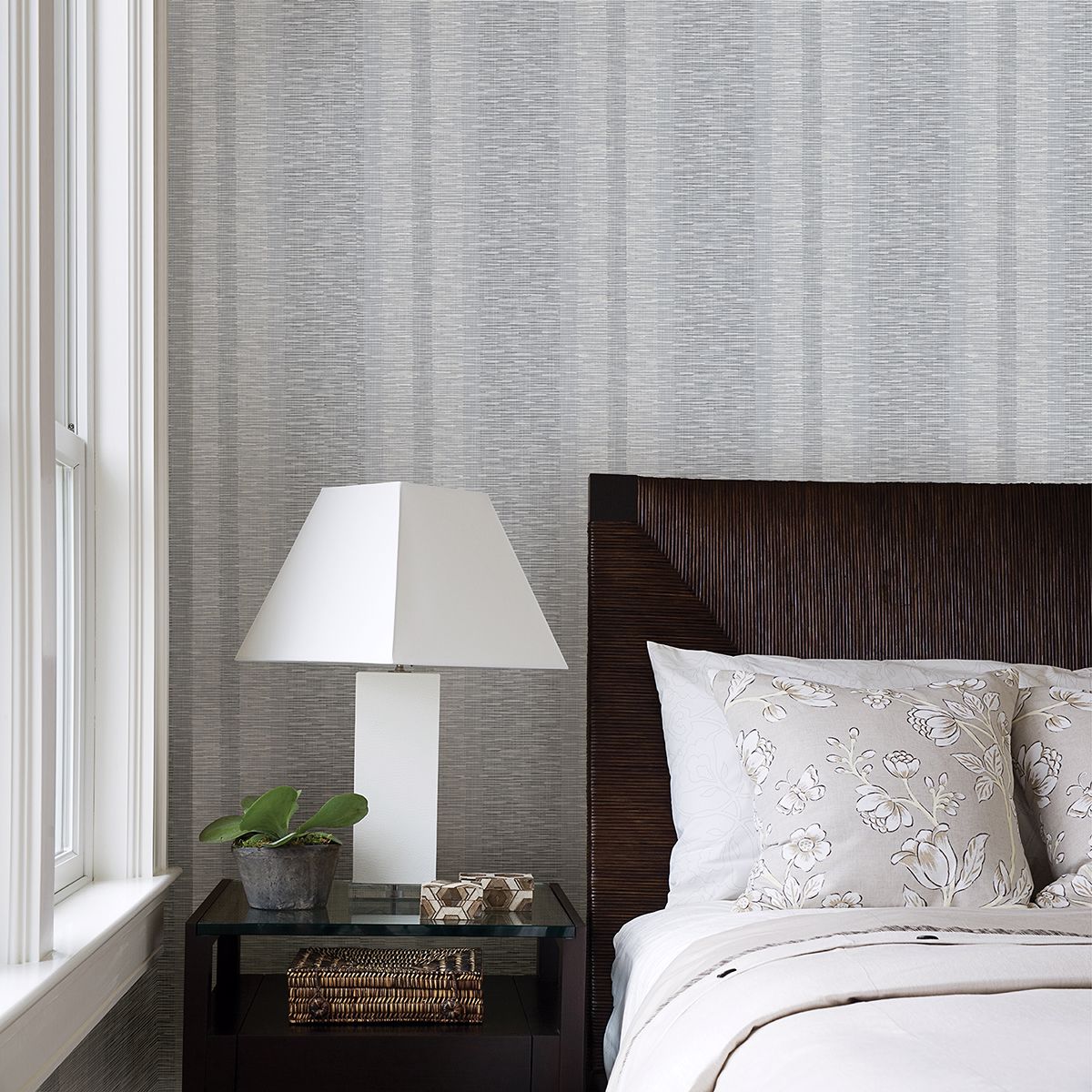 Add dimension to walls with this modern, stripe print. Layers of slate, grey and charcoal hues have a soothing energy, while string details emphasize its textured design. Pezula is an unpasted, string wallpaper.