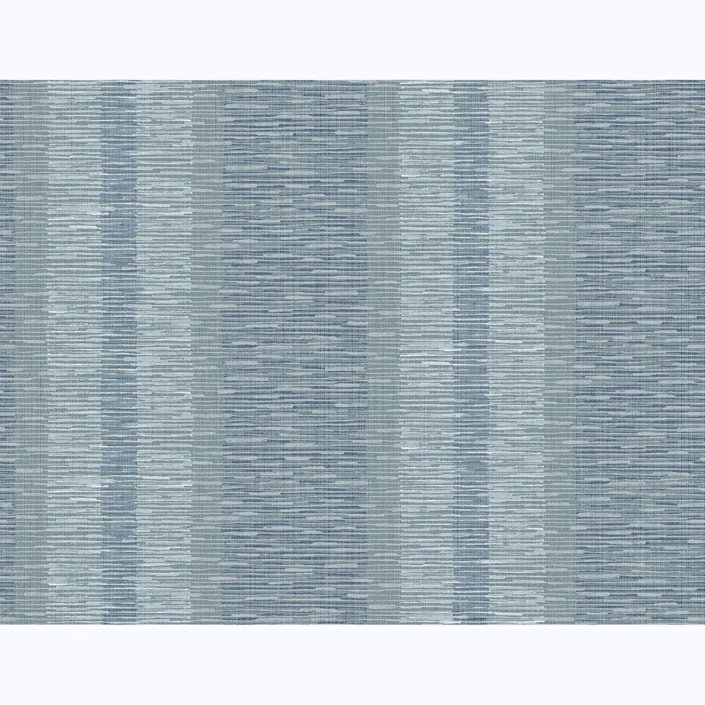 A palette of teal, indigo and light blue effortlessly meld in this contemporary stripe design. String accents and its layers of hues emphasize its dimensional effect. Pezula is an unpasted, string wallpaper.