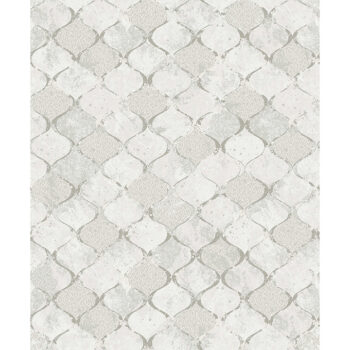 Enjoy an elegant, tiled look without the hassle of grout with this stunning ogee design. The white and light grey tiles sport various distressed, cement-like textures and are framed with flashing silver. Pilak is an unpasted, non woven wallpaper.