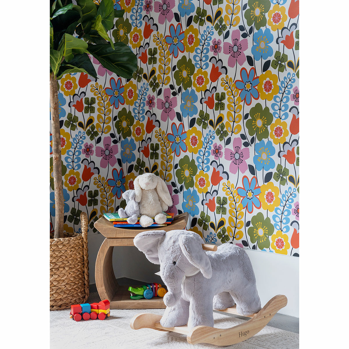 Bursting with vibrant orange, mustard, blue and pink hues, this floral wallpaper has a retro charm. Adorn walls with this nature inspired design to create an eclectic look. Piper is an unpasted, non woven wallpaper.