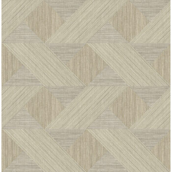 This sophisticated geometric wallpaper has the intricate interwoven detailing of parquet flooring. The pattern is formed from triangles, squares, and rhombi with warm brown coloring and varying, textured grain. Presley is an unpasted, non woven wallpaper measuring 20.5 inches wide by 33 feet long, covering approximately 56.4 square feet per roll.