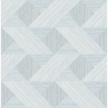 This sophisticated geometric wallpaper has the intricate interwoven detailing of parquet flooring. The pattern is formed from pale blue triangles, sea green squares, and light grey rhombi with varying, textured grain. Presley is an unpasted, non woven wallpaper measuring 20.5 inches wide by 33 feet long, covering approximately 56.4 square feet per roll.