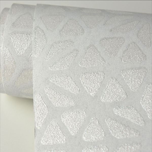 White walls don’t have to be plain and flat. The white on white geometric print shines with pearlescent ink adorned with a glitter texture. Billie is an unpasted, non woven wallpaper.