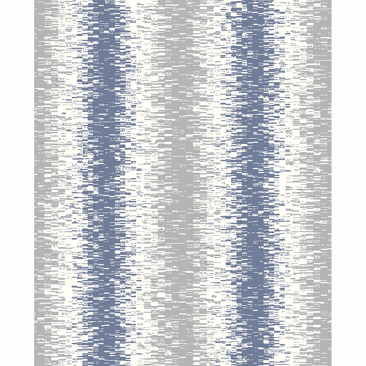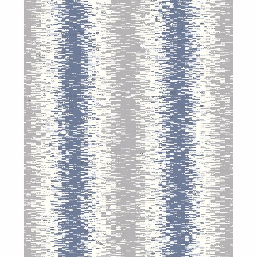 Grey, white, and blue create a soothing color palette. Raised ink gives this abstract stripe wallpaper a textural feel. Quake is an unpasted, non woven wallpaper.