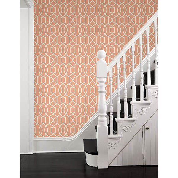 In a beautiful shade of coral, this modern wallpaper design is trendy and chic. Grey and white are the perfect compliments to this stylish geometric that has a fresh and invigorating vibe.