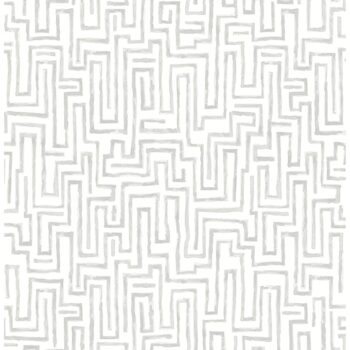 This abstract design adds a playful yet polished finish to your walls. Lines of watercolor grey inks form a maze-like geometric pattern along a white background. Ramble is an unpasted, non woven wallpaper.