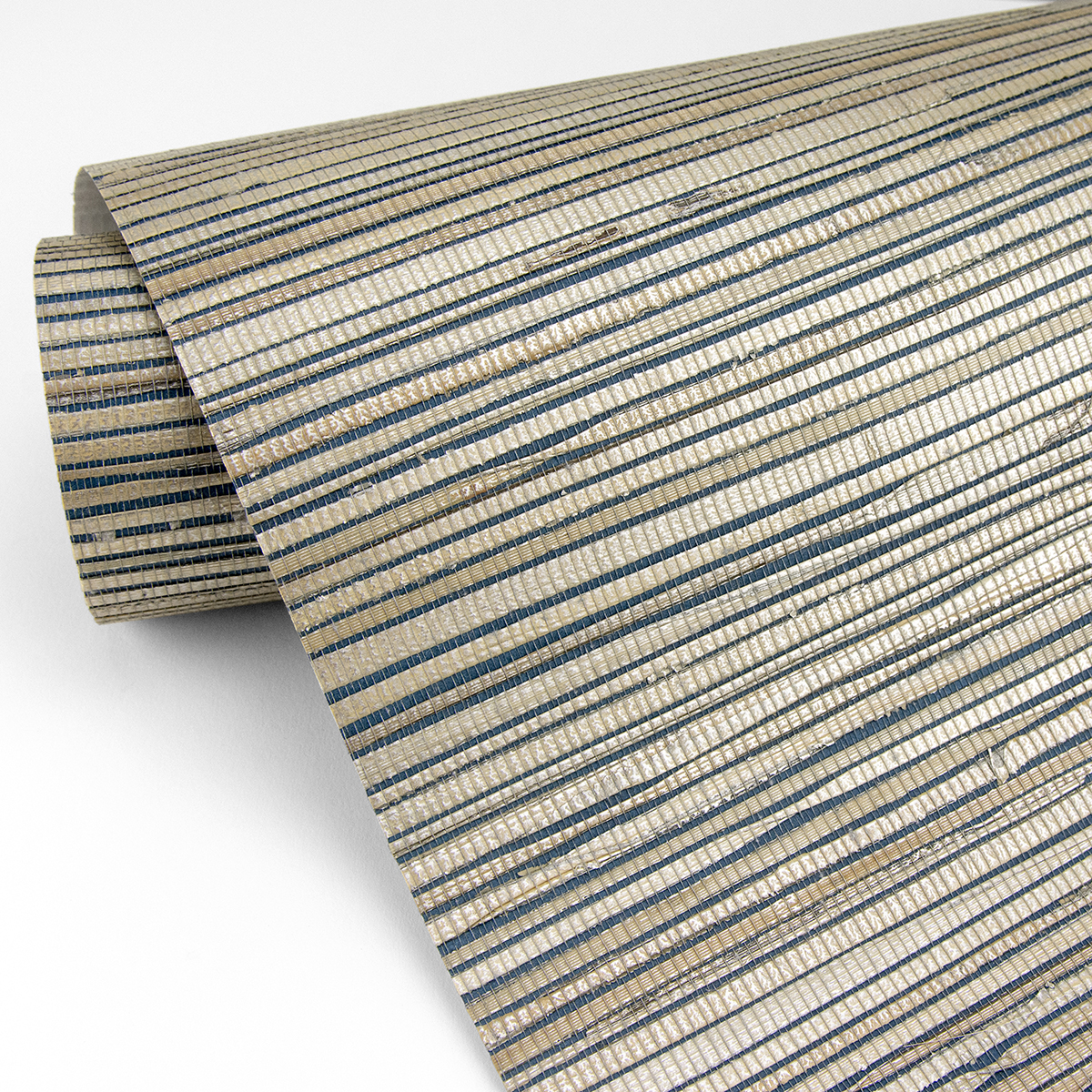 Glamorous and opulent, this woven grasscloth design is perfect for creating an alluring look. Thick champagne fibers dazzle against a rich teal backdrop. Ranong is an unpasted, grasscloth wallpaper.