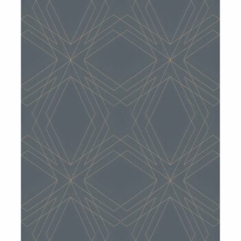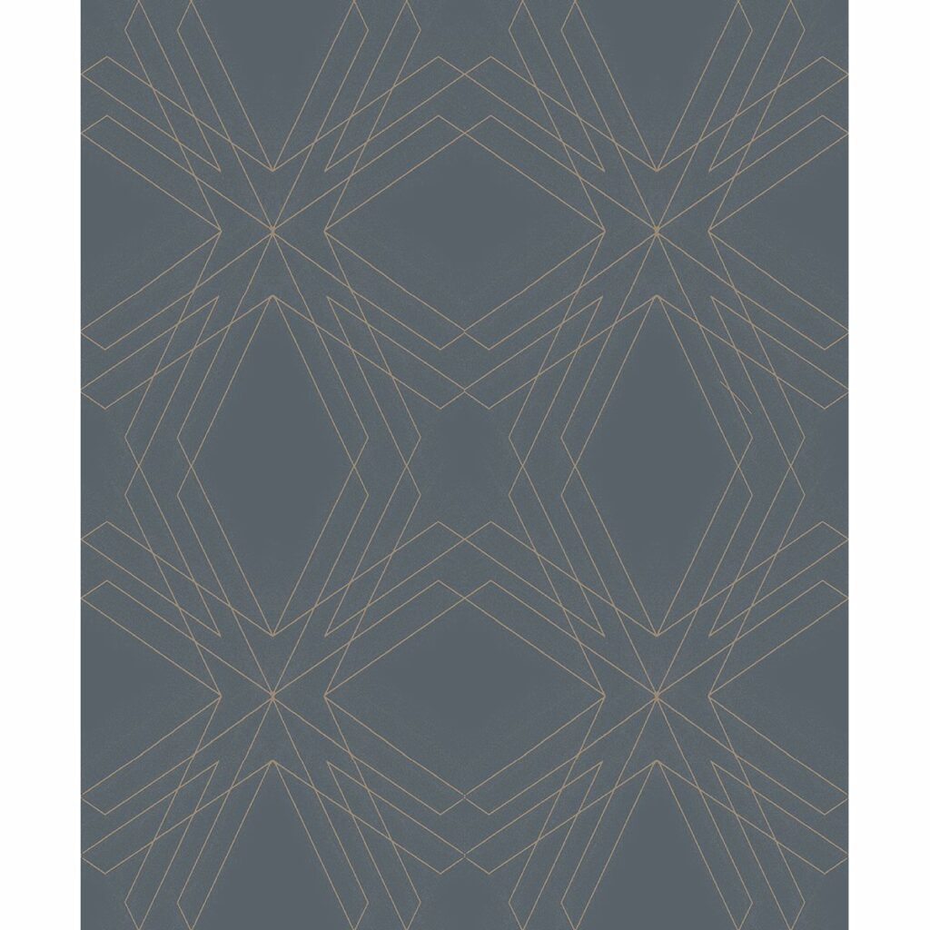 Bold and dramatic, this edgy charcoal wallpaper features a gold geometric pattern. Gold and subtle silver accents add a glamorous flair to this softly textures design. Relativity is an unpasted, non woven wallpaper.