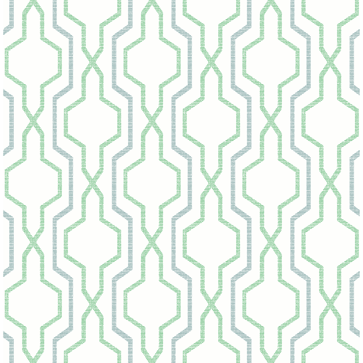 The timeless trellis designs gets a modern update with this wallpaper. The geometric chain link alternates between dark and bright green for a more dynamic and refreshing look. Rion is an unpasted, acrylic coated wallpaper.