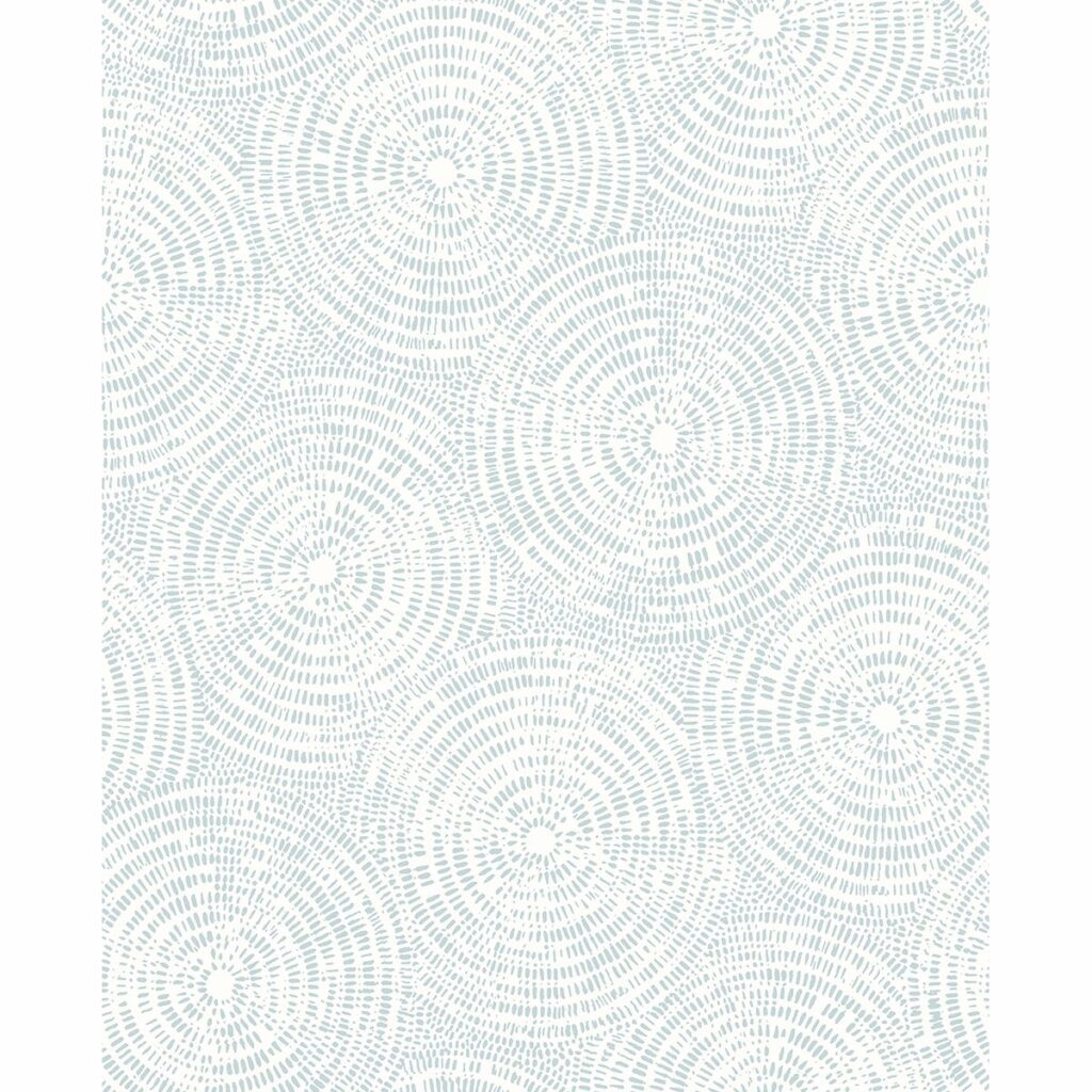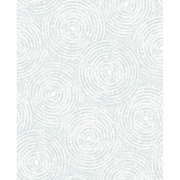 This wallpaper is full of tactile and visual intrigue. Dotted concentric circles in powder blue ripple across a white background in raised ink. Vatten is an unpasted, non woven wallpaper.