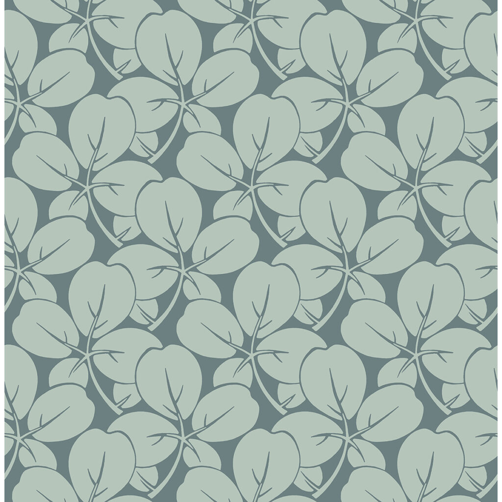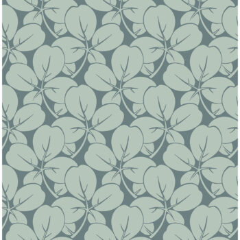 Wrap your walls in the whimsical and earthy elegance of this botanical design. Large, light teal four-leaf clovers sprout from a darker teal backdrop. Robert is an unpasted, non woven wallpaper.