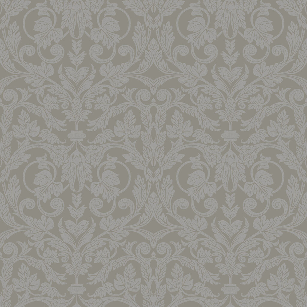 Enjoy the classical elegance of iron wrought accents with a woodland twist. The sturdy ironwork is softened with leafy scrolls and filigree, inked in light grey against a stormy grey background. Rosali is an unpasted, non woven wallpaper.