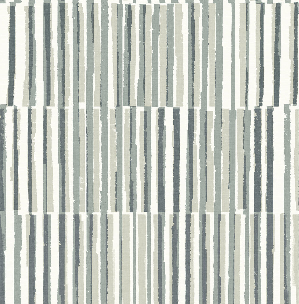 Enjoy classic design with a contemporary twist with this striped wallpaper. The slate-blue background is overlaid with rows of thin, rectangular columns detailed in white, light grey, and dark blue. Raised ink detailing adds a subtle texture and the look of fabric to this design. Sabah is an unpasted, non woven wallpaper.