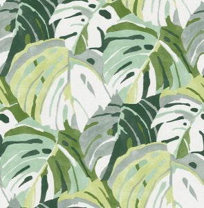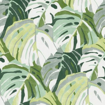 This vibrant botanical wallpaper features monstera leaves colored in shades of green, grey and white for that perfect touch of tropical flair. Samara is an unpasted, non woven wallpaper.