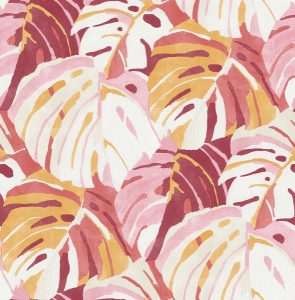 Create a tropical paradise in your home with this vivid botanical wallpaper. Monstera leaves are inked in vibrant pinks, red, oranges and white to help you achieve a vacation state of mind. Samara is an unpasted, non woven wallpaper.