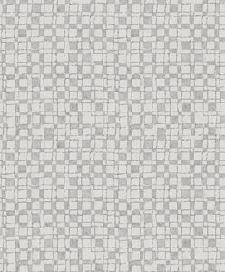 This simple geometric pattern will add serious visual interest to your walls. A light grey backdrop is covered by a grey checkerboard grid that’s accented with metallic silver raised inks. Sarni is an unpasted, foil on non woven wallpaper.