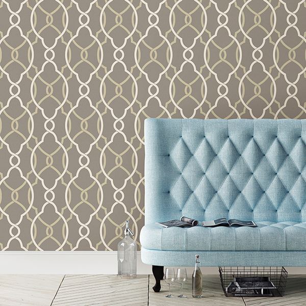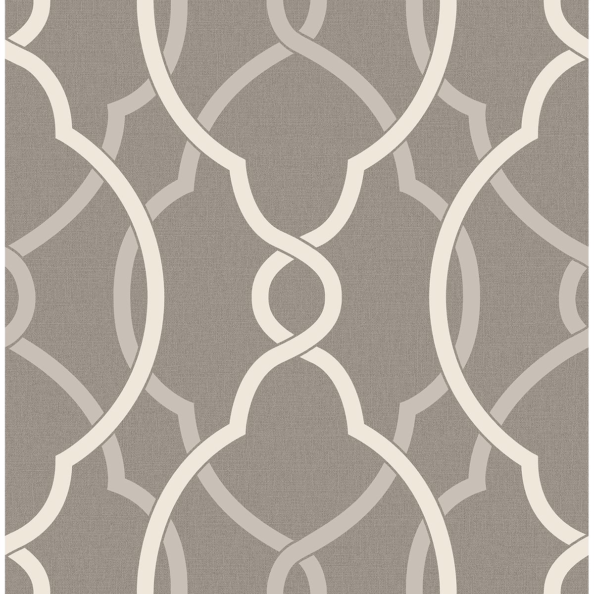 Update your walls with this modern flowing trellis wallpaper. The grey colorway has the perfect mix of on trend neutrals. A warm grey linen texture background set the tone while light grey and cream lines complete the design.