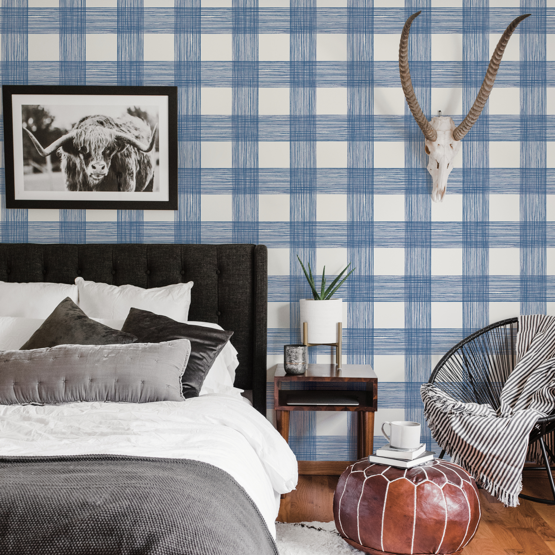 Scarborough Indigo Striated Plaid Wallpaper