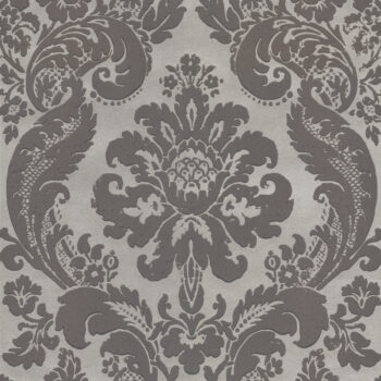 From far away, this wallpaper is a seemingly understated damask. A closer look reveals the classic is flocked like velvet and printed on a textured silver background. Shadow is a non woven, unpasted wallpaper.
