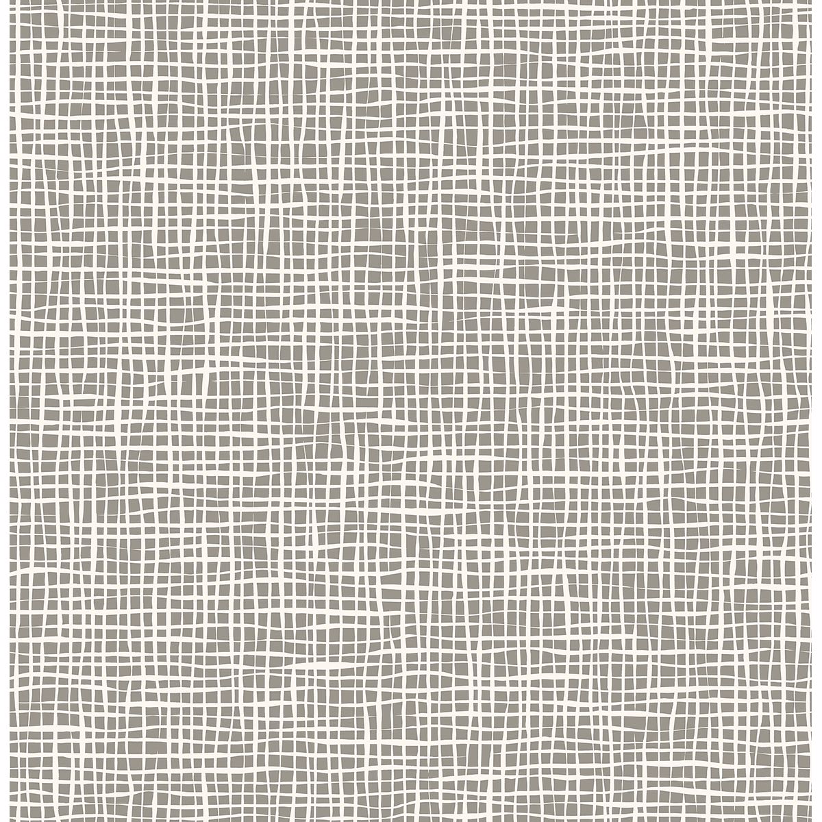 Loosely inspired by shoji panels, this modern wallpaper features a freeform grid pattern. White lines twist and weave over a grey background. Shanti is a unpasted, non woven wallpaper.