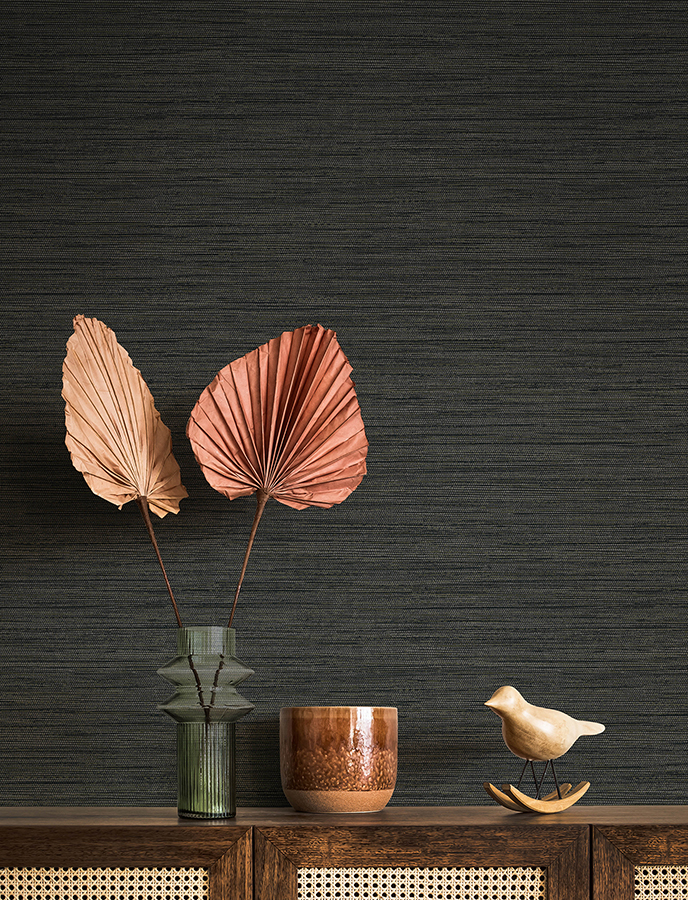 Sheehan Black Faux Grasscloth Wallpaper