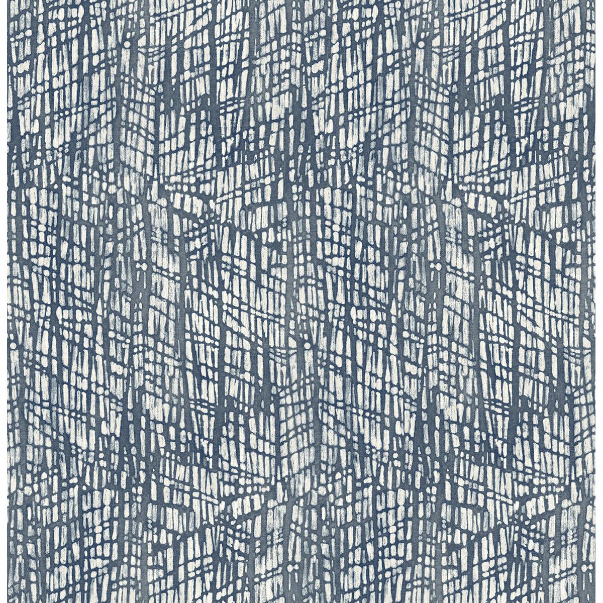 A modern work of art. This blue linear pattern forms an abstract texture on walls. Shimmer is a non woven, unpasted wallpaper.