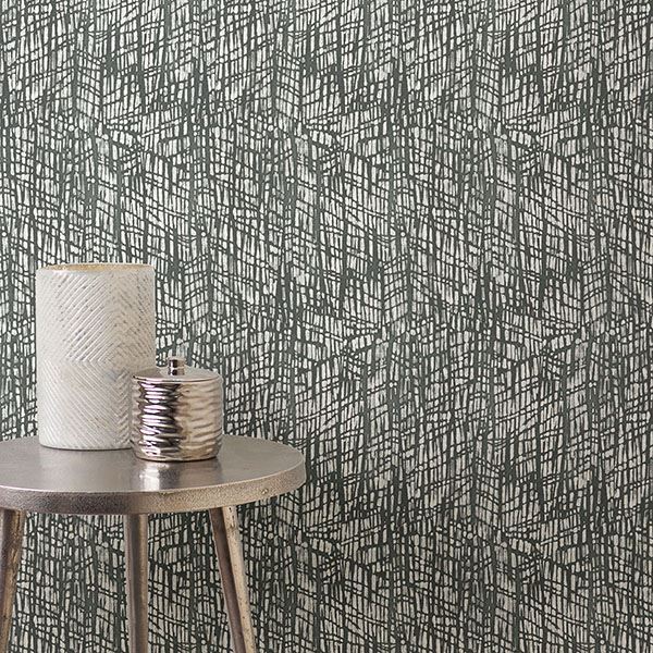 Lines cross over and glance off each other in this mesmerizing wallpaper. The grey abstract pattern has subtle shine with metallic silver details. Shimmer is a non woven, unpasted wallpaper.