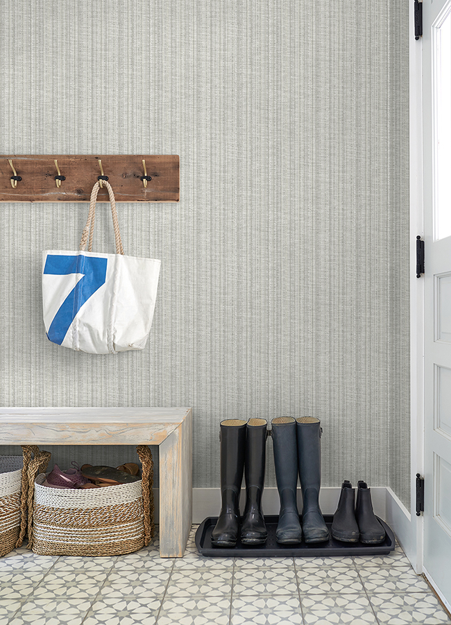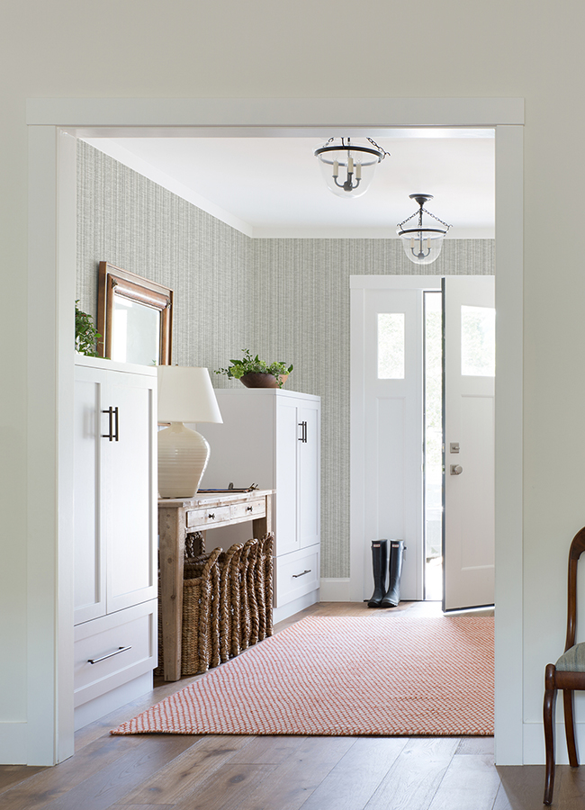 Soft and inviting, this woven wallpaper design brings subtle dimension to your interiors. A blend of powder blue, grey, and white are interwoven to create a fabric-like surface elevated by a textured, raised ink finish. Simon is an unpasted, non woven wallpaper.