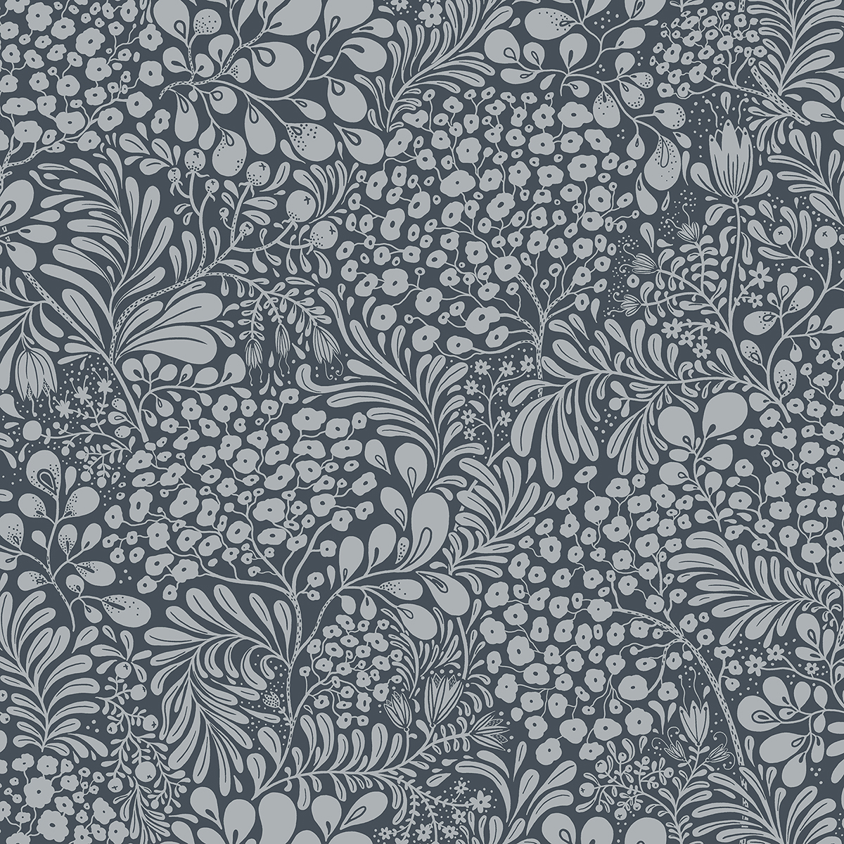 Siv Dark Blue Botanical Wallpaper