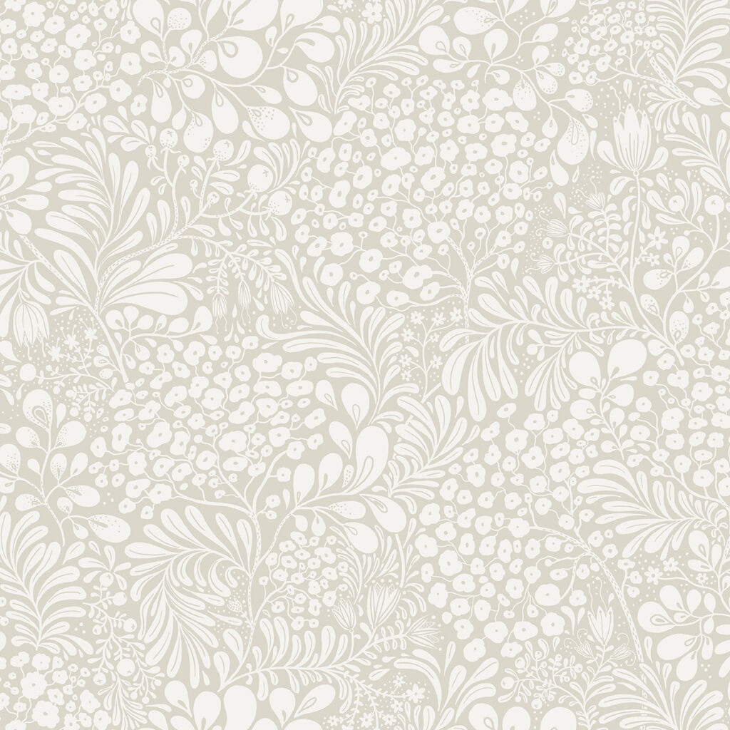 Add instant charm to your interiors with this Scandinavian-inspired botanical wallpaper. Lively clusters of twisting leaves and wildflowers are inked in white against a smokey grey backdrop. Siv is an unpasted, non woven wallpaper.