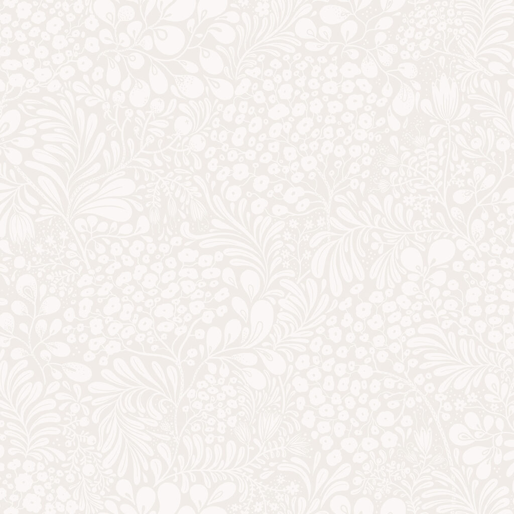 Create a calm and welcoming space in your home with this Scandinavian-inspired wallpaper. Delicate florals and lush leafy trees inked in white twist together against a light grey backdrop. Siv is an unpasted, non woven wallpaper.