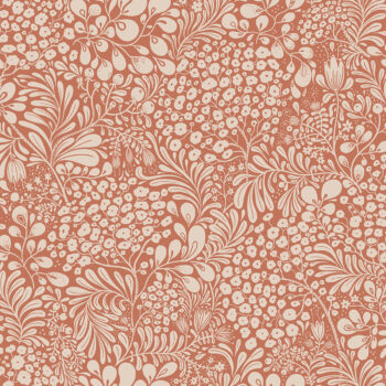 Fill your home with warmth and charm with this Scandinavian-inspired botanical. The berry red background is covered with berry boughs, leafy branches and wildflowers, all twining together and inked in white. Siv is an unpasted, non woven wallpaper.