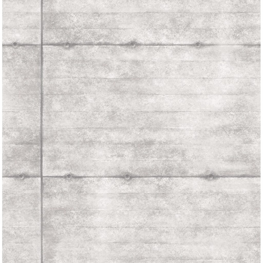 This warm toned grey concrete wallpaper has a grid pattern with workmanship detailing, giving it a realistic appearance. Create an accent wall for an industrial feel.