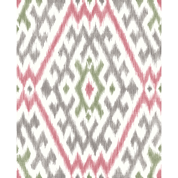 Design a showstopping space with this gorgeous ikat wallpaper! The grand scale of the tribal geometrics combined with a vibrant palette of fuchsia, lime green, and grey creates a playful, bohemian backdrop steeped in traditional craftsmanship. Solola is an unpasted, non woven wallpaper measuring 20.5 inches wide by 33 feet long, covering approximately 56.4 square feet per roll.