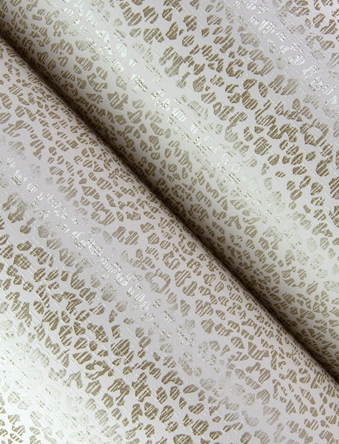 Enjoy textural flair and wild sophistication with this animal print design. Iconic leopard print is scaled down, inked in pale metallic gold, and given a tactile, textural overlay for added depth. Soul is an unpasted, non woven wallpaper measuring 20.5 inches wide by 33 feet long, covering approximately 56.4 square feet per roll.