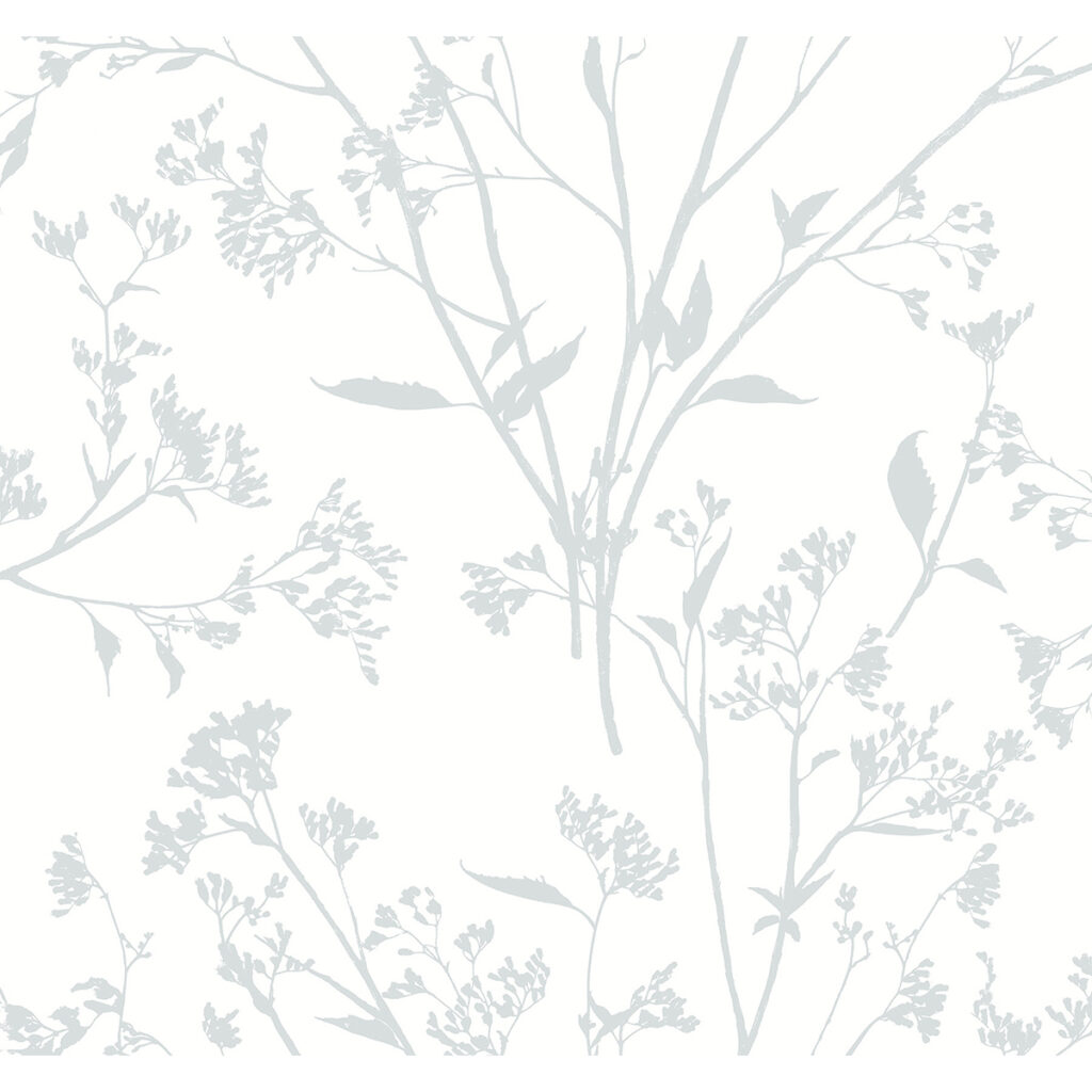 Add soft, earthen elegance to your home with this botanical wallpaper. The white background is detailed with wispy branches and delicate leaves inked in a silvery grey. Southport is an unpasted, screen acrylic coated wallpaper.