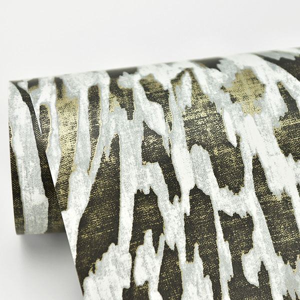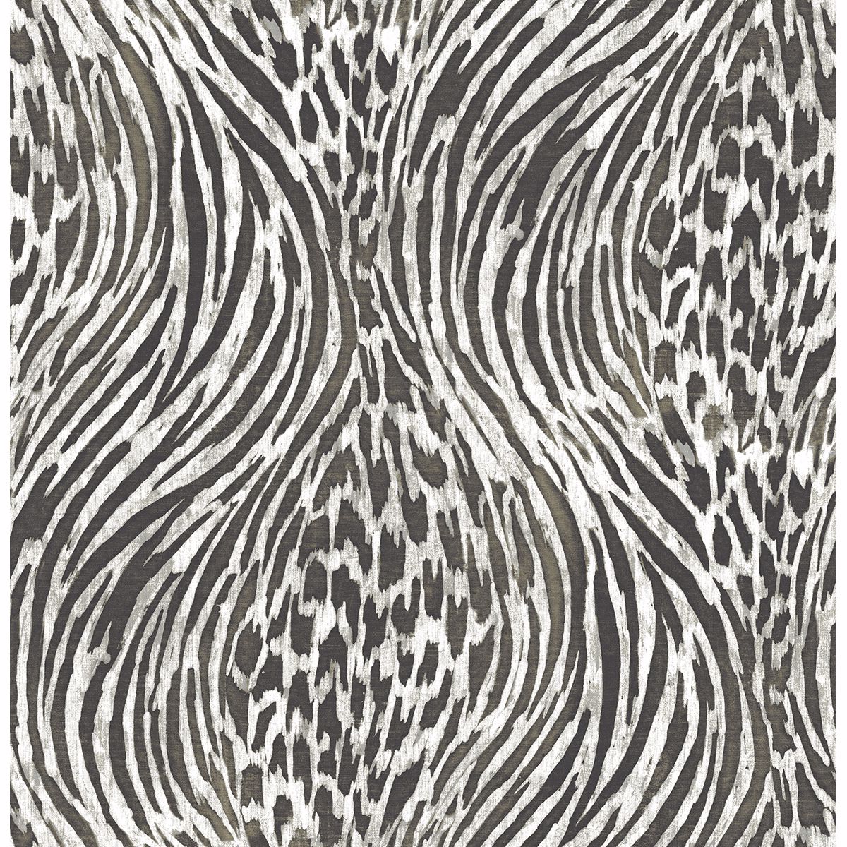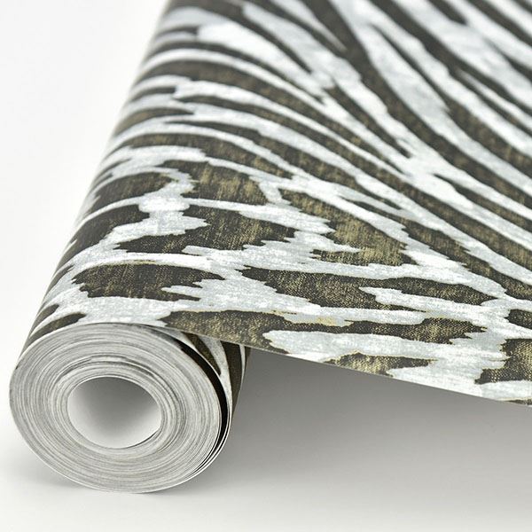 This wallpaper celebrates the magnetism of animal prints with a classic ogee motif. Touches of metallic platinum add texture to the black and grey pattern. Splendid is a non woven, unpasted wallpaper.
