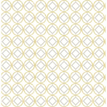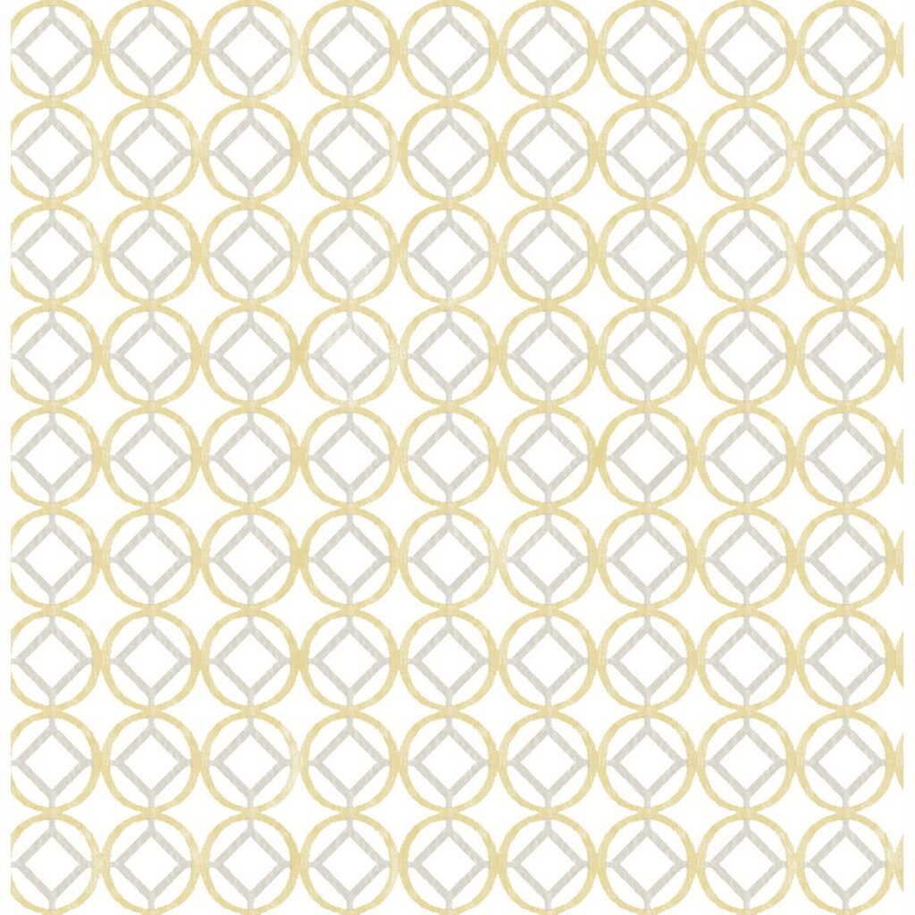Gold and silver get a matte finish in this geometric wallpaper. A watercolor effect softens the bold lines of the design, creating a modern look.